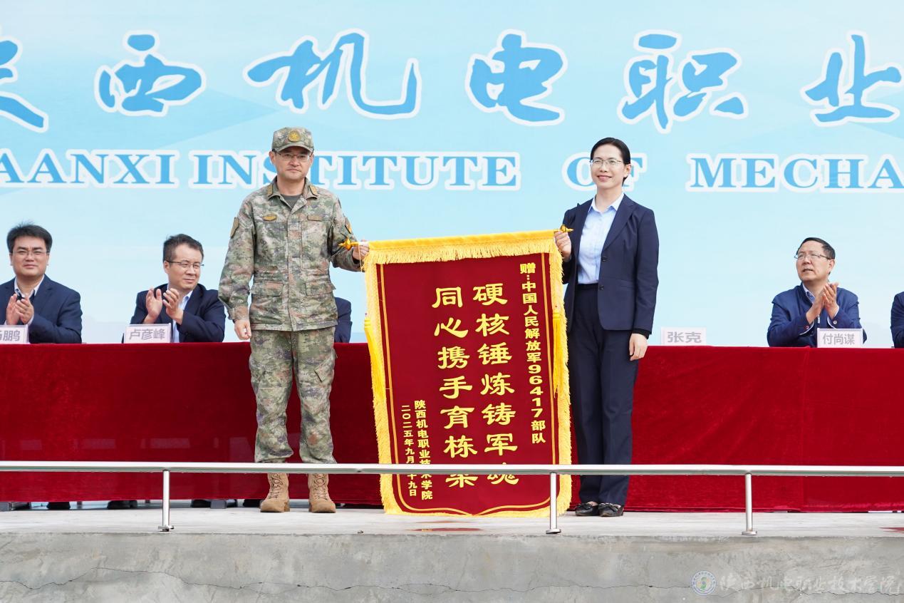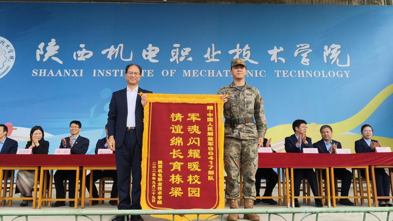 校领导代表学校向承训部队赠送锦旗,向官兵们的辛勤付出与悉心指导表达诚挚感谢。