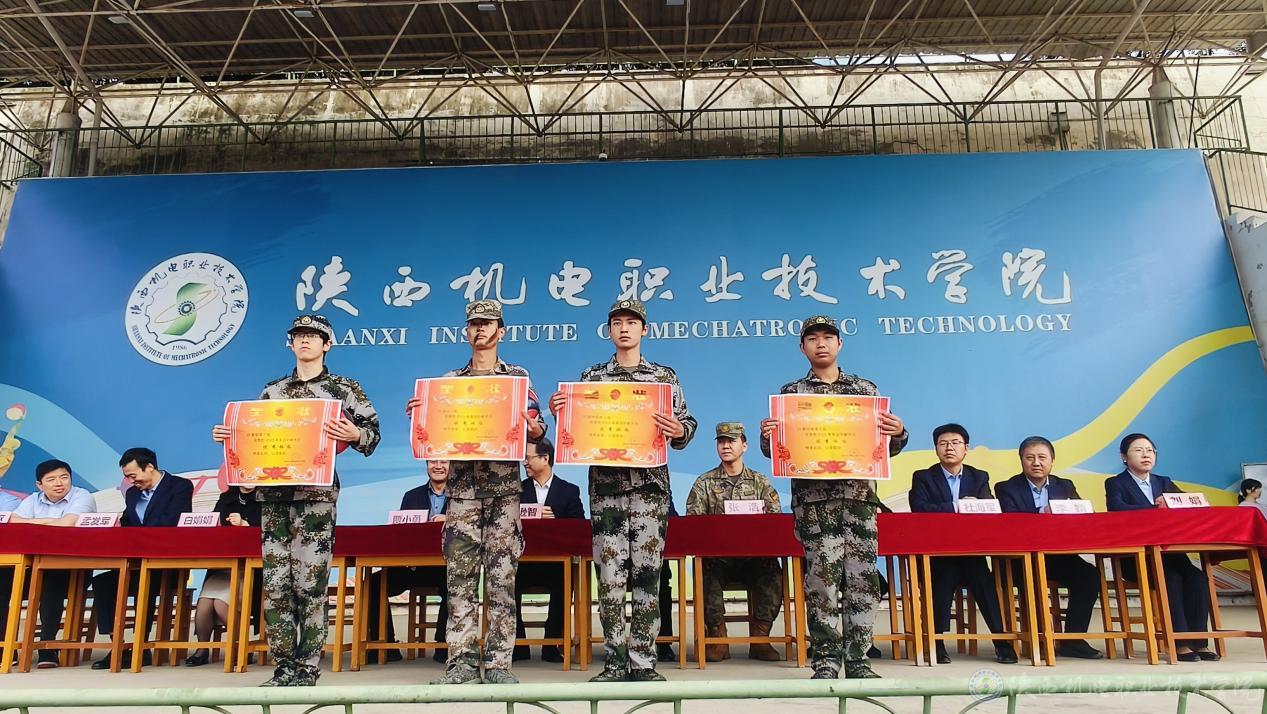 党委委员、党委宣传部部长李明,电子信息学院党支部书记杨鹏分别宣读军训表彰文件,对军训期间表现突出的优秀班级、优秀辅导员、优秀班主任及军训标兵予以表彰,并现场颁发奖励。